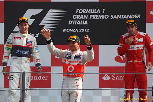 ![]() На старте обошлось без серьёзных инцидентов. Хэмилтон сохранил преимущество поула, Масса опередил Баттона и атаковал Льюиса в первом повороте, но британец остался впереди. Уэббер допустил контакт с Пересом и потерял три позиции, Росберг – потерял пять, а Алонсо отыграл четыре. Первая десятка на 2-м круге: Хэмилтон – Масса – Баттон – Шумахер – Феттель – Райкконен – Алонсо – Кобаяши – ди Реста – Сенна. Хэмилтон быстро оторвался от Массы на дистанцию, не позволяющую бразильцу использовать DRS, на четвёртом круге Феттель обогнал Шумахера в борьбе за четвёртую позицию, на седьмом Михаэля опередил Алонсо. На девятом круге Вернь выбыл из борьбы – на торможении машина потеряла стабильность и вылетела с трассы – первый сход в гонке. На 11-м Уэббер опередил ди Ресту в борьбе за 10-ю позицию. На 14-м круге Мальдонадо провёл пит-стоп, на 15-м Росберг сменил резину, на 16-м – Шумахер. Перес опередил Райкконена в борьбе за шестую позицию и Кими свернул в боксы. На 19-м круге Баттон опередил Массу в борьбе за вторую позицию, и на 20-м бразилец провёл пит-стоп. На 21-м круге Феттель, Алонсо и Кобаяши сменили резину, на 22-м – Уэббер и ди Реста, на 23-м – Баттон, на 24-м – Хэмилтон, на 25-м – Риккардо и Сенна. Гонку возглавил Серхио Перес – в Sauber решили максимально отложить пит-стоп, но на 29-м круге Хэмилтон вышел вперёд, вернув лидерство, а Алонсо со второй попытки опередил Феттеля в борьбе за пятое место. Первая попытка закончилась неудачно – Феттель вынудил Алонсо выехать за пределы трассы и был оштрафован проездом по пит-лейн. Лишь на 30-м круге Перес сменил резину. Первая десятка на 31-м круге: Хэмилтон – Баттон – Масса – Алонсо – Феттель – Шумахер – Райкконен – Перес – Росберг – Уэббер. На 34-м круге машина Баттона потеряла скорость – занимавший вторую позицию британец выбыл из борьбы. На 35-м Феттель свернул в боксы для отбытия штрафа и вернулся на трассу девятым. На 36-м Перес опередил Райкконена в борьбе за пятое место, сначала Кими смог вернуть позицию, но на следующем круге Серхио вновь вышел вперёд. Первая десятка на 37-м круге: Хэмилтон – Масса – Алонсо – Шумахер – Перес – Райкконен – Росберг – Уэббер – Феттель – ди Реста. На 37-м круге Шумахер провёл второй пит-стоп, Росберг опередил Райкконена в борьбе за шестое место, а на следующем круге тоже свернул в боксы. Алонсо без проблем опередил Массу, поднявшись на второе место. На более свежих шинах Перес быстро сокращал отставание от Массы, на 43-м круге мексиканец вышел вперёд, а на 46-м обогнал Алонсо, поднявшись на вторую строчку, и бросился в погоню за Хэмилтоном. ![]() На 48-м круге Феттель выбыл из борьбы - вновь из-за проблем с генератором, на 49-м Шумахер опередил Уэббера в борьбе за шестое место. На 50-м круге Росберг опередил ди Ресту – в конце гонки гонщики, выбравшие два пит-стопа, получили преимущество. На 51-м круге развернуло Уэббера, Марк смог остаться на трассе, но машина серьёзно потеряла в скорости – двойной сход для Red Bull Racing. Хюлкенберг остановил машину в боксах. Перес проезжал круг в отличном темпе, отыгрывая у Хэмилтона больше секунды на круге, но отрыв Льюиса был слишком велик – британец первым пересёк линию финиша, одержав 20-ю победу в карьере и третью в этом сезоне. Серхио Перес финишировал вторым, в третий раз за сезон поднявшись на подиум. Алонсо – третьим. Итальянская гонка получилась нервной и инт