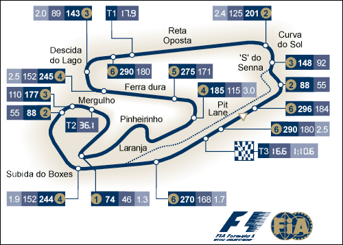 ![]() Автодром имени Жозе Карлоса Паче в Сан-Паулу, на юго-востоке Бразилии, традиционно хвалят перед гонкой и ругают после неё. Трасса позволяет обгонять, на ней есть несколько интересных участков, но после финиша часто вспоминают о кочковатом асфальте и непривычном движении против часовой стрелки. Да и разгул преступности вносит неожиданный колорит в привычный ход Гран При – в позапрошлом году было совершено вооруженное нападение на Дженсона Баттона, так что команды рекомендуют персоналу лишний раз не появляться вдали от публичных мест без сопровождения. Интерлагос был построен на частные средства и открыт для гонок в 1940 году, однако уже через десять лет поступил в муниципальную собственность – за символическую плату комитет по празднованию столетия города выкупил автодром у прежних владельцев. В то время предпринимались попытки модернизировать трассу, однако до реальных работ дело не дошло. Только к 1972 году Интерлагос смог принять у себя этап Формулы 1, а в 1990-м Гран При Бразилии получил постоянную прописку в Сан-Паулу. Трассу часто по привычке называют Интерлагос, хотя официально автодром носит имя Жозе Карлоса Паче, который погиб в 1977-м. Бронзовый памятник гонщику установлен неподалеку от главного входа. Интерлагос – термин географический, автодром расположен между двумя водохранилищами, обеспечивающими Сан-Паулу питьевой водой и электроэнергией. Трасса требовательна к мощности мотора и заставляет инженеров искать традиционный компромисс между прижимной силой на медленном втором секторе и скоростью на первом и третьем. Из-за разреженного воздуха моторы здесь не так эффективны, как на других трассах – Интерлагос находится на возвышенности (более 750 метров над уровнем моря), что приходится учитывать, да и погода в Сан-Паулу традиционно непредсказуема. Погода в Интерлагосе непредсказуема, в решающий момент настройки, выбранные одной из команд, могут оказаться более эффективными – что и помогло два года назад Нико Хюлкенбергу завоевать поул. Первый и второй поворот великолепны. После точки самого серьёзного торможения начинается напряженный левый поворот, переходящий в напряжённый правый, потом вы спускаетесь с холма и вновь поворачиваете налево, пытаясь разогнаться максимально эффективно. Очень важно добиться стабильности задней части машины, чтобы пройти эту связку без потерь». Вилли Рампф, бывший технический директор Sauber: «Для настройки аэродинамики трасса в Сан-Паулу достаточно сложная – на первом и третьем секторе важна скорость, а на втором, включающем массу медленных поворотов, требуется максимум прижимной силы. Как и на других автодромах, в Интерлагосе нужно найти компромисс, причём аэродинамическая эффективность машины серьёзно влияет на результат. Некоторые участки трассы неоднократно покрывали свежим асфальтом, но она по-прежнему ухабиста, что необходимо учитывать при настройке шасси. Многое зависит и от резины, в это время года погода здесь часто меняется, абразивный асфальт увеличивает износ, а высокая вероятность дождя заставляет команды оперативно подстраиваться под состояние покрытия».