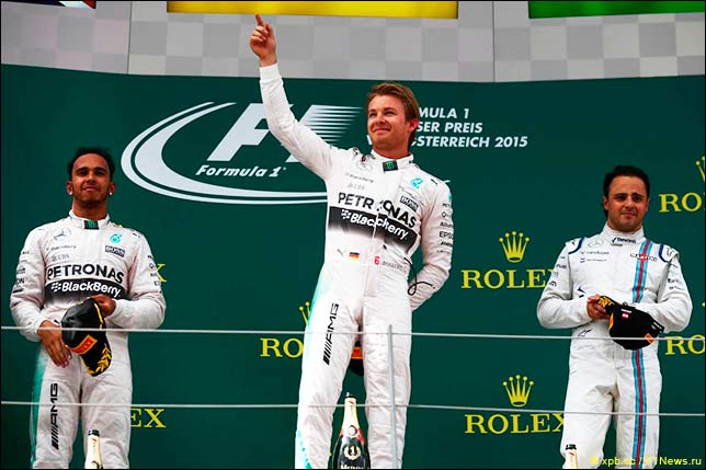 ![]() Если в 2014-м первый ряд на старте в Австрии неожиданно заняли пилоты Williams, то на этот раз сюрприза не произошло – первый ряд достался гонщикам Mercedes, завершившим квалификацию вылетами на последнем круге – Хэмилтон вылетел в первом, а Росберг – в последнем повороте. Льюис завоевал 45-й поул в карьере и седьмой в восьмом Гран При сезона, а Нико уступил ему две десятых. Со второго ряда стартовали Феттель и Масса, с третьего – Хюлкенберг и Боттас. Как и в прошлом году, в первой десятке на стартовом поле оказались гонщики семи разных команд. Кими Райкконен в субботу выбыл из борьбы уже в первой квалификационной сессии, не успев проехать третий быстрый круг из-за недопонимания с командой. Ещё дальше стартовали гонщики Red Bull Racing, потерявшие по десять позиций за замену двигателей внутреннего сгорания, и McLaren – 20 и 25 за замену элементов силовой установки. Трое из них получили дополнительный штраф – пятисекундный на пит-стопе у Риккардо, проезд по пит-лейн у Алонсо и десятисекундный Stop&Go у Баттона. Одним из факторов уик-энда была прохладная и переменчивая погода. В пятницу гонщики работали на сухой трассе, утром в субботу лил дождь, а по ходу квалификации асфальт подсыхал. В воскресенье небо вновь затянули тучи, по ходу гонки прогноз обещал высокую вероятность осадков, но обошлось – днём даже выглянуло солнце. В Pirelli третий гоночный уик-энд подряд привезли «мягкую пару» – Soft и SuperSoft. При прохладной погоде шины прогревались медленно, разница в скорости между составами оказалась невелика, как и износ. Мальдонадо, Перес, Райкконен и Риккардо стартовали на Soft, остальные начали гонку на SuperSoft. На старте Росберг опередил Хэмилтона. Эриксон допустил фальстарт и позже был наказан штрафным проездом по пит-лейн. Между вторым и третьим поворотом в серьёзную аварию попали Алонсо и Райкконен, выехал автомобиль безопасности. Квят свернул в боксы для замены шин и носового обтекателя после контакта с Пересом, повреждения оказались более серьёзными – сцепление с трассой ухудшилось, но Даниил продолжил борьбу. Стивенс остановил машину из-за утечки масла и сошел с дистанции. Первая десятка за автомобилем безопасности: Росберг - Хэмилтон - Феттель - Масса - Хюлкенберг - Ферстаппен - Боттас - Наср - Сайнс - Грожан. На 4-м круге Баттон сменил резину из-за прокола. На 7-м круге был объявлен рестарт. Росберг сохранил лидерство, Баттон свернул в боксы, чтобы отбыть штрафную остановку. Сайнс и Грожан допустили контакт в борьбе за позицию, Роман потерял два места. У Баттона возникли проблемы с коробкой передач, команда позвала его в боксы, где британец сошел с дистанции. Второй подряд двойной сход для McLaren Honda. К 10 кругу Гран При Австрии лишилась трёх чемпионов мира. Росберг оторвался от Хэмилтона на две секунды, пелотон растянулся. На 13-м круге Грожан ошибся, вылетев в последнем повороте, но вернулся на трассу. На 15-м круге Боттас опередил Ферстаппена в борьбе за шестое место. Первая десятка на 16-м круге: Росберг - Хэмилтон - Феттель - Масса - Хюлкенберг - Боттас - Ферстаппен - Наср - Сайнс - Перес. На 22-м круге машина Эриксона остановилась на прямой – мотор неожиданно потерял мощность, но после паузы Маркус смог продолжить движение. На 24-м круге Грожан сменил резину, на 25-м – Наср. Боттас опередил Хюлкенберга в борьбе за пятую позицию и Нико свернул в боксы за новым комплектом шин. На 2