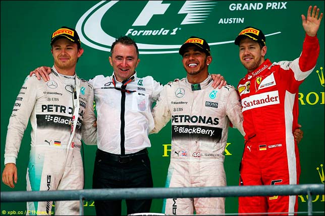 ![]() За четыре Гран При США после открытия автодрома в Остине по ходу сессий на трассу не упало ни капли дождя – было тепло, солнечно и без осадков, но в 2015-м эту серию прервал сильнейший тайфун Patricia, атаковавший побережье Мексики – автодрому в американском Остине от него тоже крепко досталось. В пятницу в первой тренировке гонщикам удалось немного поработать на влажной трассе, а вторая была отменена, утром в субботу гонщики выехали под сильнейшим дождём, а квалификацию после трёх часов ожидания перенесли на воскресенье. Утром в день гонки вновь лил дождь, из трёх квалификационных сессий удалось провести только первые две – потом воды стало слишком много, и позиции на стартовом поле определили по результатам второй сессии. Гонщики Mercedes заняли весь первый ряд – Росберг в третий раз подряд выиграл квалификацию у Хэмилтона. Со второго ряда стартовали Риккардо и Квят, с третьего – Перес и Хюлкенберг. Трое пилотов были наказаны потерей позиций за замену элементов силовой установки, гонщики Ferrari – десяти, Уилл Стивенс – двадцати. Валттери Боттас потерял пять мест за замену коробки передач. Карлос Сайнс разбил машину в квалификации и не прошел в 107%, но был допущен на старт решением стюардов. Александер Росси, пропустив этап в Сочи, в Остине вновь сел за руль Manor, став первым американским гонщиком на домашнем Гран При с 2007 года. За полтора часа до старта дождь прекратился и асфальт почти высох, но некоторые участки оставались влажными, а на поребриках и за пределами трассы было очень мокро. Все гонщики стартовали на промежуточной резине, а со сликами и настройками для сухой трассы по ходу уик-энда команды не работали вообще, что сказалось на расстановке сил. На старте Хэмилтон опередил напарника, захватив лидерство – не обошлось без контакта, но без серьёзных последствий. На вторую позицию поднялся Квят, а Росберг откатился на пятую, но опередил Переса, вернув одно место. Боттаса развернуло, его машину задел Алонсо. Райкконен отыграл восемь позиций, поднявшись на 10-е место. Гонщики Sauber столкнулись, у Насра пострадало переднее антикрыло. Боттас свернул в боксы для смены носового обтекателя – и перешел на слики. Грожан получил прокол и сменил резину. Наср тоже перешел на слики. Стивенс остановил машину в боксах и выбыл из борьбы. Первая десятка на 4-м круге: Хэмилтон - Квят - Риккардо - Росберг - Перес - Хюлкенберг - Феттель - Ферстаппен - Баттон - Райкконен. Внизу длинной прямой трасса оставалась влажной, на большей части дистанции – сухой, но оптимальный момент перехода на слики ещё не наступил. Наср и Боттас вновь побывали боксах, вернувшись на промежуточные шины. Квят не отставал от Хэмилтона, проехав несколько лучших кругов, и атаковал Льюиса, но британец сразу вернул позицию. Райкконен и Ферстаппен опередили Хюлкенберга. Из-за обломков на трассе был объявлен режим виртуальной машины безопасности. Первая десятка за виртуальной машиной безопасности: Хэмилтон - Квят - Риккардо - Росберг - Перес - Феттель - Ферстаппен - Райкконен - Сайнс - Хюлкенберг. На седьмом круге Боттас сошел с дистанции из-за проблем с подвеской, остановив машину в боксах. На восьмом круге был объявлен рестарт. Росберг опередил Риккардо и Квята, бросившись в погоню за Хэмилтоном. Перес опередил Феттеля. На 10-м круге Грожан сменил резину, переключившись на слики, а на 12-м сошел 