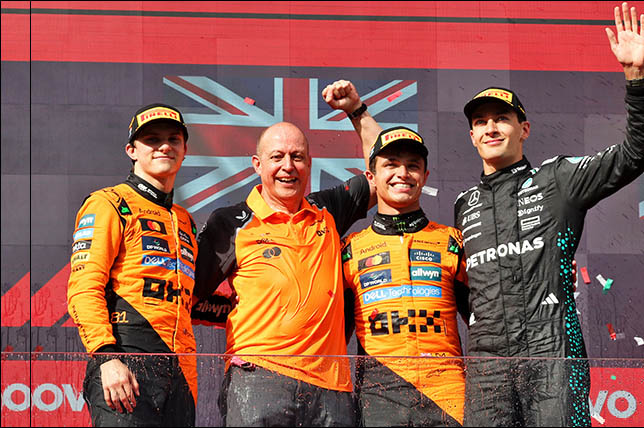 ![]() Этап в Сильверстоуне был двенадцатым в календаре и завершал первую половину сезона. Расстановка сил давно прояснилась, но почти на каждом этапе случались сюрпризы. Команды улучшали машины, менялись трассы, условия, погода, менялась и расстановка сил – последний сезон перед сменой регламента получился интересным и непредсказуемым. Перед стартом в Сильверстоуне вряд ли кто-то мог с уверенностью назвать имя победителя. В четырёх прошедших перед гонкой сессиях лидировали четверо гонщиков – Хэмилтон и Норрис в пятницу, Леклер утром в субботу, а квалификацию выиграл Ферстаппен. С первого ряда стартовали Ферстаппен и Пиастри, со второго – Норрис и Расселл, с третьего – Хэмилтон и Леклер. Двое гонщиков потеряли позиции на стартовом поле из-за штрафов. Антонелли ещё в Австрии был оштрафован на три места за столкновение с Ферстаппеном, а Берман получил штраф на десять мест уже в Сильверстоуне – за нарушение правил под красными флагами. Франко Колапинто в условиях закрытого парка заменили силовую установку, и он стартовал с пит-лейн. Согласно традиции, в дни британского уик-энда хотя бы в один день идёт дождь. На этот раз таким днём стало воскресенье. Больше всего досталось гонщикам молодёжных серий и зрителям на трибунах. К старту гонки Формулы 1 погода улучшилась, но трасса местами оставалась влажной. В Pirelli привезли на этап более мягкие шины, чем обычно – составы С2, С3 и C4 в роли Hard, Medium и Soft. В гонке все стартовали с места на промежуточной резине, проехав прогревочный круг за автомобилем безопасности. Перед стартом Леклер, Хаджар, Расселл, Бортолето и Берман свернули в боксы за сликами. Стартовое поле сформировалось без них. На старте Ферстаппен сохранил лидерство. Колапинто не смог стартовать с пит-лейн из-за отказа коробки передач. Зажатый между Цунодой и Лоусоном Окон врезался в Лоусона и продолжил движение, машина Лиама получила повреждения и остановилась. Выехал автомобиль безопасности. Антонелли свернул в боксы и перешёл на слики. Первая десятка на третьем круге: Ферстаппен - Пиастри - Норрис - Хэмилтон - Гасли - Алонсо - Сайнс - Элбон - Цунода - Хюлкенберг. На 4-м круге Бортолето вылетел с трассы, пересёк гравийную ловушку и врезался в барьер. Он пытался продолжить движение, но по просьбе команды остановился. Для эвакуации машины объявили режим виртуального автомобиля безопасности VSC. На 7-м круге Стролл сменил резину и на сликах Soft быстро прорывался наверх. На 8-м круге объявили рестарт. Пиастри атаковал Ферстаппена и вышел вперёд – возглавил гонку и смог оторваться. На 9-м круге Антонелли обогнал Леклера в борьбе за 14-ю позицию, но на 10-м Шарль вернул позицию. На 10-м круге Хюлкенберг и Антонелли сменили резину, оставив промежуточные шины. На 11-м круге Стролл, Расселл и Леклер провели пит-стоп. Начался дождь. Хаджар и Берман сменили шины. На 11-м круге Ферстаппен ошибся, вылетел с трассы и пропустил Норриса. На 12-м круге Пиастри, Норрис и Ферстаппен сменили резину. У Ландо возникла заминка с креплением переднего левого колеса. Все, кто ещё не побывал в боксах, перешли на промежуточную резину. На 13-м круге Расселл обогнал Алонсо, Гасли – Хэмилтона. Первая десятка на 14-м круге: Пиастри - Ферстаппен - Норрис - Стролл - Хюлкенберг - Гасли - Окон - Хэмилтон - Расселл - Алонсо. Начался сильный дождь. Леклер вылетел в гравий, продолжив движение. Дирекц