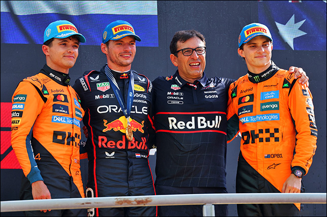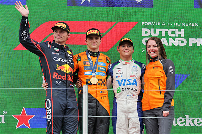![]() В Зандфорте сложно обгонять, но гонка не бывает скучной – у трассы в дюнах весёлый характер, как и у заполнивших трибуны болельщиков в оранжевых майках. Разбить машину здесь легче, чем показать хорошее время, а погода на побережье Северного моря всегда готова преподнести сюрприз. Закон узкой трассы старой школы работает – последние четыре года в Зандфорте побеждал обладатель поула, но любая серия однажды заканчивается. В пятницу и утром в субботу лидировал Ландо Норрис, впервые в сезоне возглавивший протокол всех трёх тренировок, но в решающий момент квалификации Оскар Пиастри проехал быстрее, завоевав пятый в сезоне поул. Первый ряд стартового поля заняли гонщики McLaren Пиастри и Норрис, со второго стартовали Ферстаппен и добившийся лучшего в карьере результата Хаджар, с третьего – Расселл и Леклер. Берман стартовал с пит-лейн после нарушения правил закрытого парка. Перед стартом стюарды приняли к сведению сразу четыре нарушения – Хэмилтон проигнорировал жёлтые флаги при въезде на пит-лейн, а Ферстаппен, Сайнс, Норрис и Хюлкенберг слишком медленно ехали по трассе. Все они будут рассмотрены после гонки. В этот уик-энд в Pirelli изменили выбор составов и привезли в Зандфорт не самые жёсткие шины, а на шаг более мягкие – С2, С3 и C4 в роли Hard, Medium и Soft. В гонке Колапинто, Хюлкенберг, Ферстаппен и Цунода стартовали на Soft, Окон и Берман – на Hard, остальные выбрали Medium. Прогноз обещал осадки по ходу уик-энда, но в пятницу и субботу дожди шли ночью, а днём гонщики работали на сухой трассе. В воскресенье перед стартом гонки трассу окружили тучи. На старте Пиастри сохранил лидерство. Ферстаппен на более мягких шинах обогнал Норриса, едва удержав машину. Леклер обогнал Расселла. Элбон отыграл пять мест, Алонсо потерял три места, Бортолето – пять мест и левую торцевую пластину переднего антикрыла после контакта со Строллом. Стюарды оставили инцидент без последствий. Первая десятка на 2-м круге: Пиастри - Ферстаппен - Норрис - Хаджар - Леклер - Расселл - Хэмилтон - Лоусон - Сайнс - Элбон. На 3-м круге Хюлкенберг опередил Окона в борьбе за 16-е место. На 5-м круге Колапинто обогнал Гасли в борьбе за 14-е. Первая тройка отрывалась, едущий четвёртым Хаджар собрал за собой «поезд DRS» из всех остальных машин. На 9-м круге Норрис обогнал Ферстаппена в борьбе за второе место и взвинтил темп. Стролл сменил резину. На 16-м круге Колапинто пропустил Гасли по просьбе команды. На 17-м круге начал накрапывать дождь, но почти сразу перестал, и трасса осталась сухой. На 19-м круге Алонсо сменил резину, на 20-м – Цунода, Колапинто и Хюлкенберг, на 23-м – Леклер. На 23-м круге Хэмилтон разбил машину, врезавшись в барьер в третьем повороте – первый сход Льюиса за рулём Ferrari. Выехал автомобиль безопасности. Пиастри, Норрис, Ферстаппен, Хаджар, Расселл, Лоусон, Сайнс, Элбон, Антонелли, Гасли, сменили резину. Все перешли на Hard, Ферстаппен получил Medium. Первая десятка за автомобилем безопасности: Пиастри - Норрис - Ферстаппен - Хаджар - Расселл - Леклер - Лоусон - Сайнс - Окон - Элбон. На 27-м круге объявили рестарт. Пиастри сохранил лидерство. Лоусон и Сайнс коснулись и с проколом откатились назад. Антонелли опередил Окона. Цунода обогнал Алонсо. На 29-м круге Лоусон и Сайнс сменили резину, вернувшись на трассу последними. На 30-м круге Сайнс опередил Лоусона. Сайнс получил десятисекундный штраф за контакт 